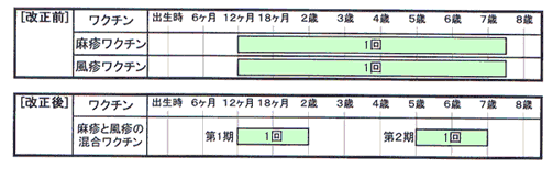 やっと2006年4月からMR(ハシカ・風疹二種混合)ワクチンとして年齢を区切って行う方式になりました。